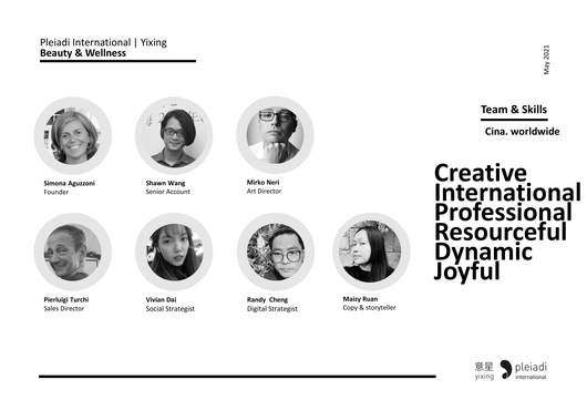 Yixing Design is the Shanghai Branch of Pleiadi International, an independent Italian Branding Agency. As the parent company we are focused in strategic consulting, branding, ADV, digital and social media. Yixing design has been growing brands and businesses in China since 2006. We continue a rich legacy through borderless creativity—operating, innovating, and creating at the intersection of talent and capabilities. Our goal is to build meaningful connections between brands and their target audience in order to stand out in the Chinese market.
